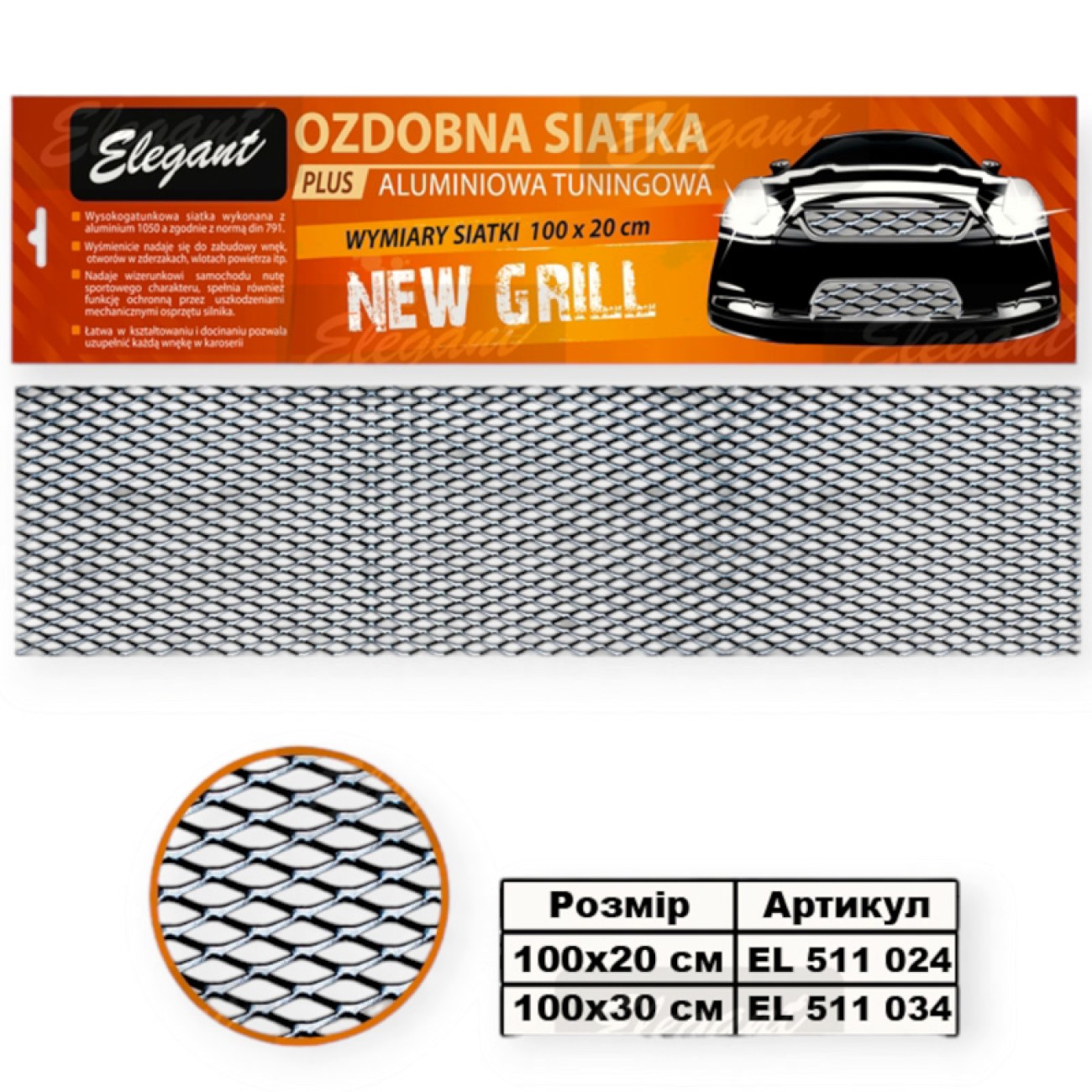 Опис Сітка декоративна "захист радіатора" №4 чорна 100х20см (велика комірка)