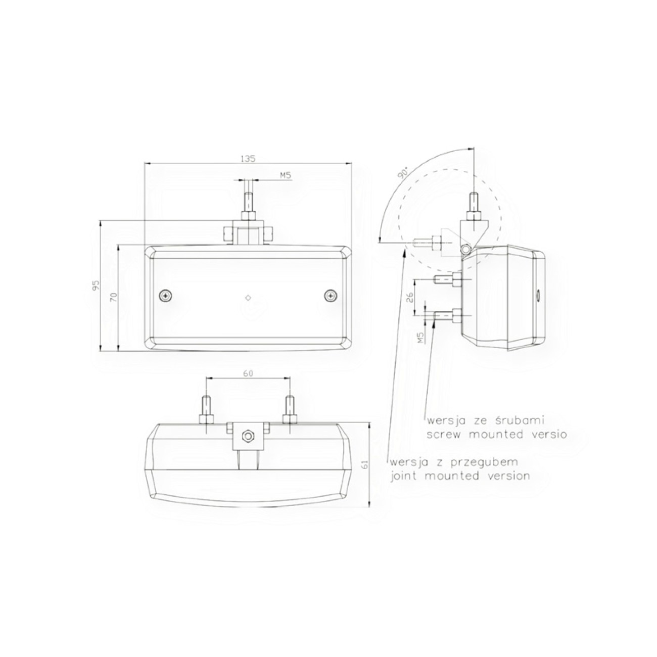 Описание Фонарь задн. универc. DOB-050 S (135x70x61) (красный противотуманка)